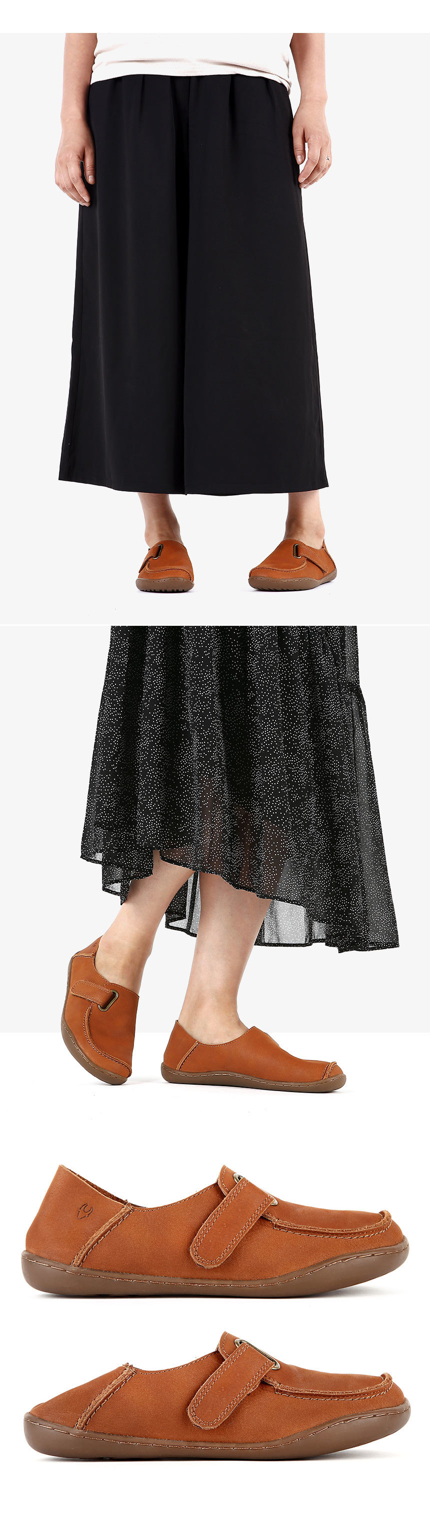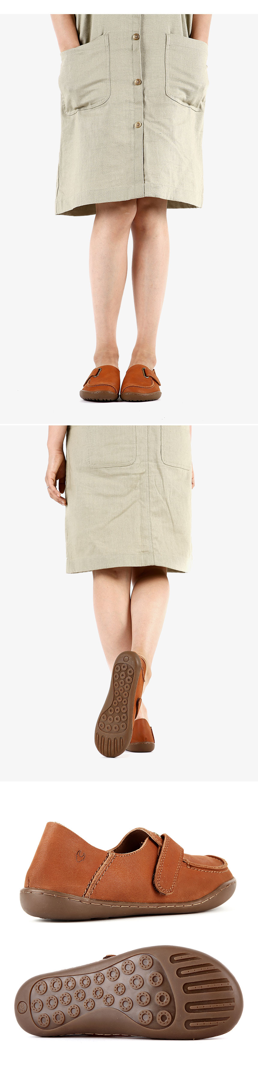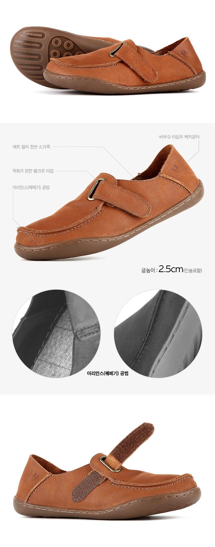 둥그스름한 앞코부분과 여유있는 발볼로 지면에 발이 닿을 때 발가락이 모이지 않도록 제작하였습니다. 발가락 사이가 자연스럽게 벌어져 공기순환을 원활히 하기 때문에 땀이 차는 것을 줄여주며 덕분에 쾌적함을 느낄 수 있습니다.
