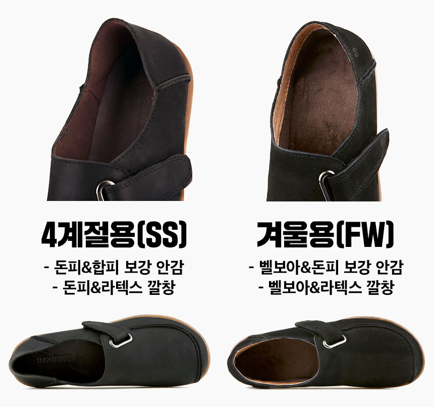 각 컬러별 겨울용(FW)과 4계절용(SS)의 가죽과 디자인은 동일합니다.