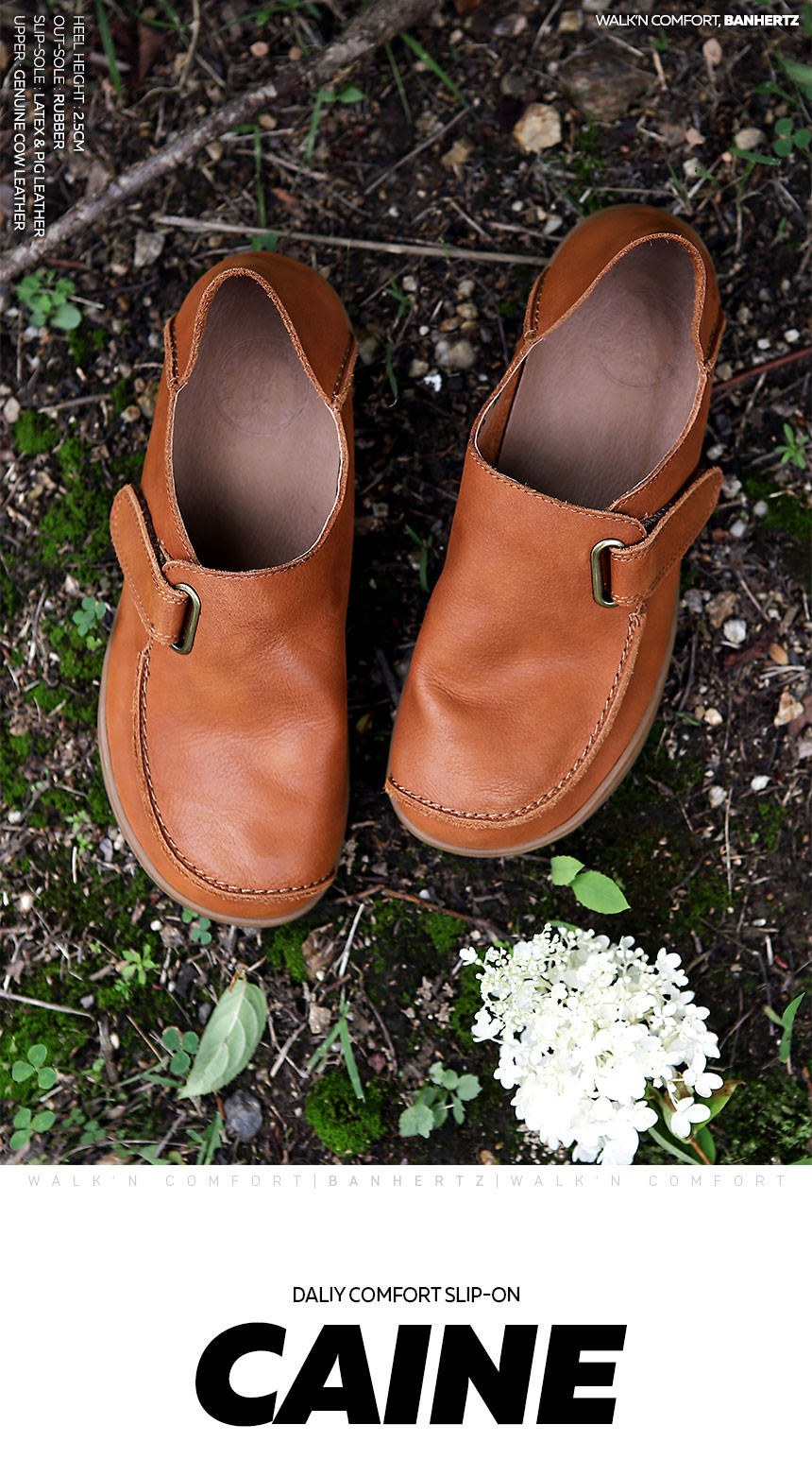 앞코와 볼이 여유로운 슬립온으로 발가락이 모이지 않아 공기 순환이 원활하며 안정감 있는 걸음걸이를 선사합니다. 매력적인 매트한 느낌의 소가죽과 원한다면 접어신을 수 있는 바부슈로 설계되어 블로퍼처럼 편히 신을 수 있어 것은 덤이죠!