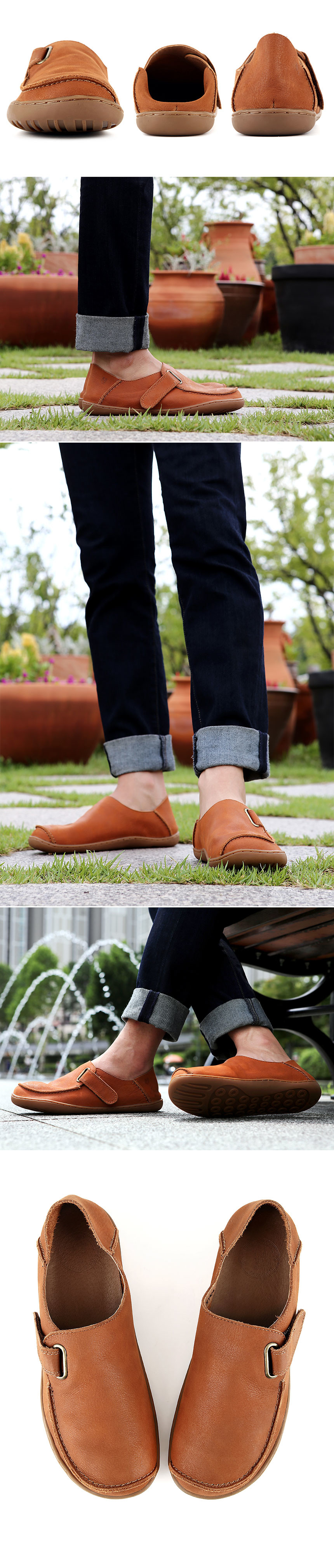 둥그스름한 앞코부분과 여유있는 발볼로 지면에 발이 닿을 때 발가락이 모이지 않도록 제작하였습니다. 발가락 사이가 자연스럽게 벌어져 공기순환을 원활히 하기 때문에 땀이 차는 것을 줄여주며 덕분에 쾌적함을 느낄 수 있습니다.