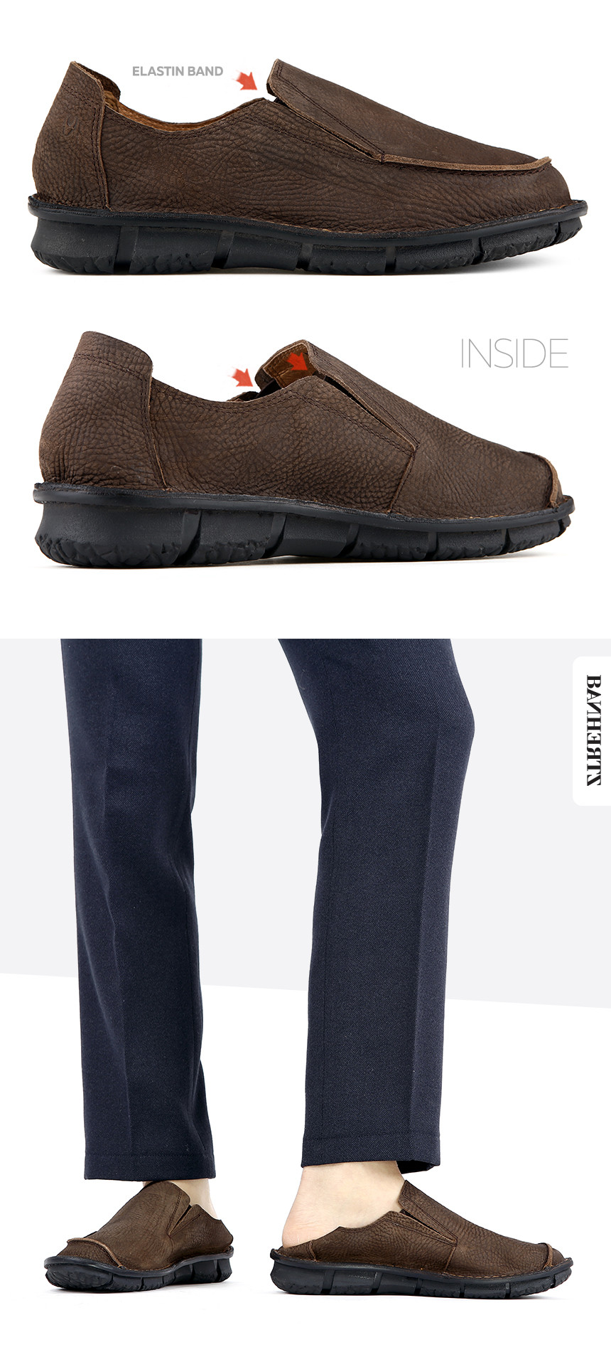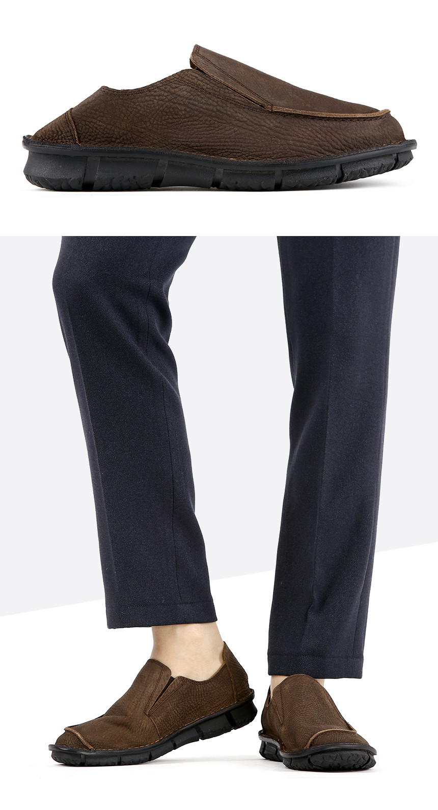코카인 시리즈는 뒤꿈치부분(백카운터)을 접어 신을 수 있는 바부슈로 제작된 것이 가장 큰 특징이라고 할 수 있습니다. 가까운 곳에 잠시 외출할 때나 사무실에서도 원한다면 언제든지 슬리퍼처럼 신을 수 있어 더할 나위 없이 편한 신발이 되어주죠!