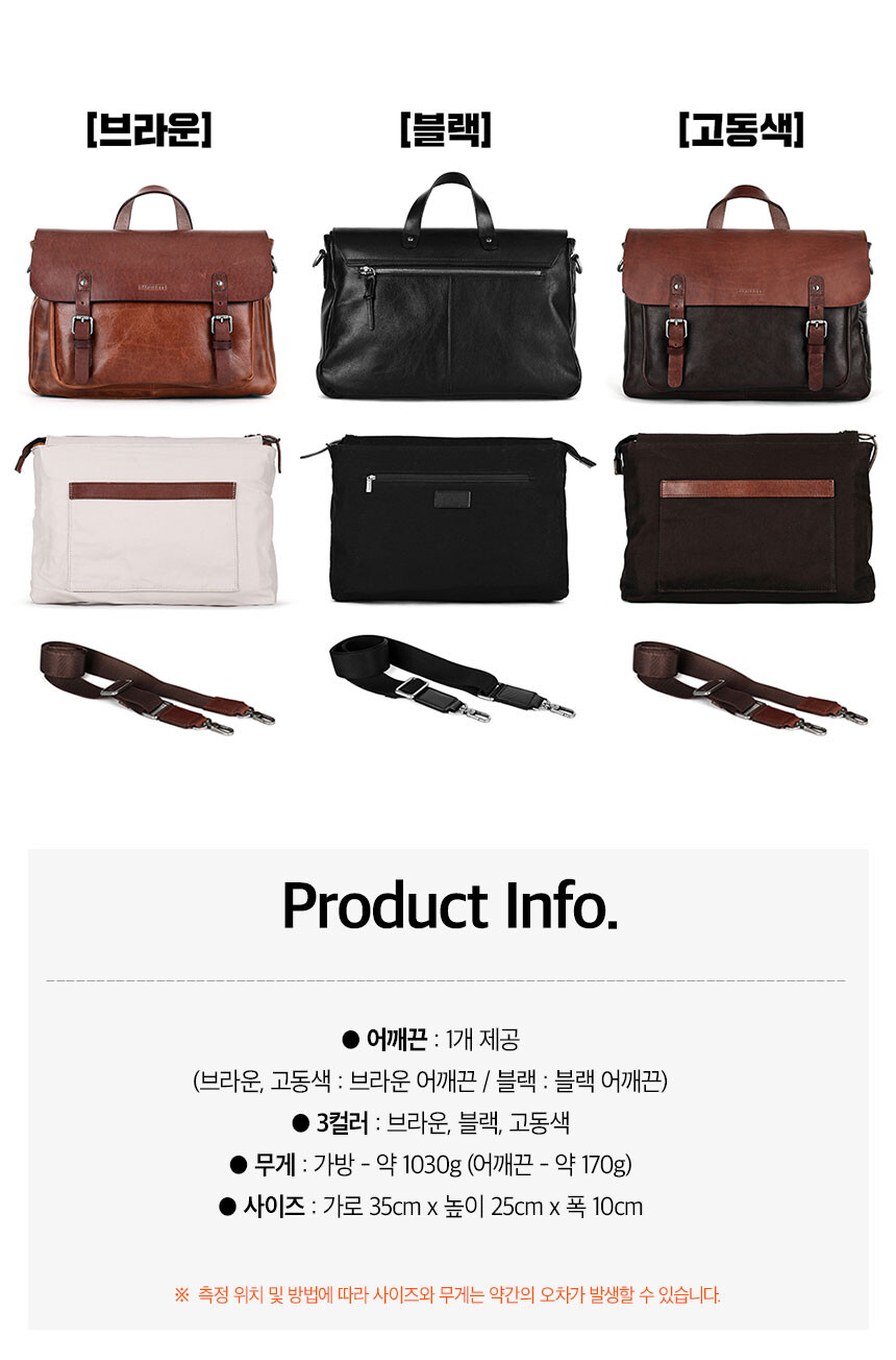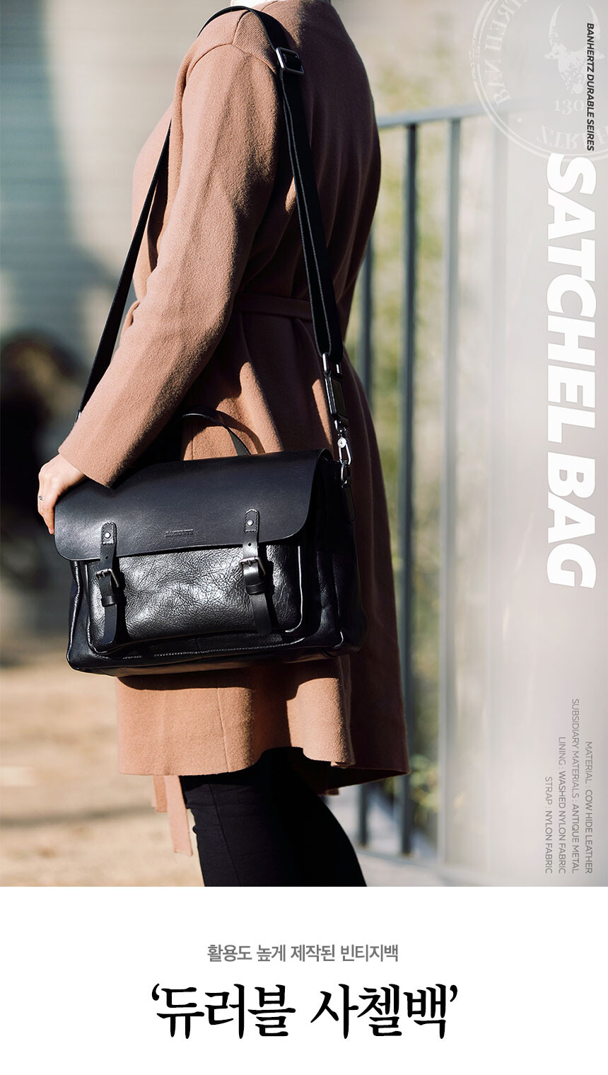 듀러블 사첼백은 브라운, 블랙, 고동색 3가지 컬러로 준비되어 있습니다.