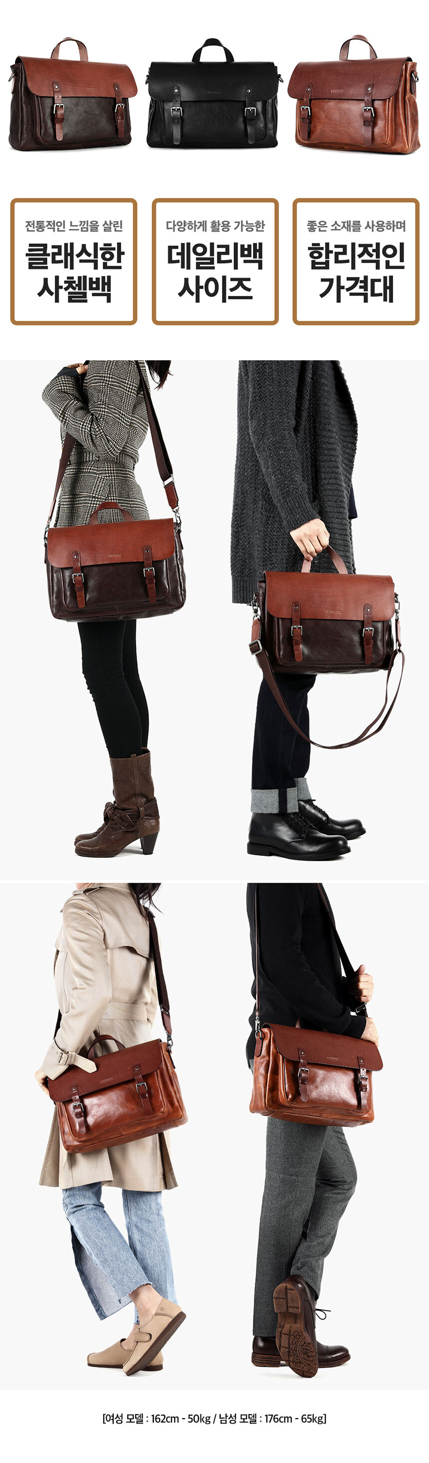 일반적으로 사첼백이라고 하면 떠오르는 각진 디자인의 전통적 느낌은 잃지 않으면서, 빈티지함을 가미해 데일리백으로 편하게 활용 할 수 있도록 제작한 통가죽 가방입니다. 거금을 투자한 만큼 자주, 편하게 사용할 수 있다면 더 좋지 않을까요?