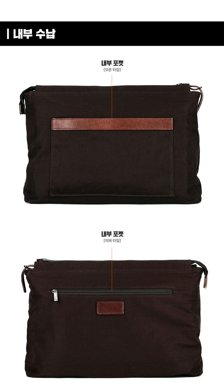전면과 후면의 포켓을 크게 마련하여 넉넉한 수납력이 특징입니다. 메인 수납부 안에도 두 곳의 내부 포켓이 준비되어 있으니 다양하게 활용하실 수 있습니다.