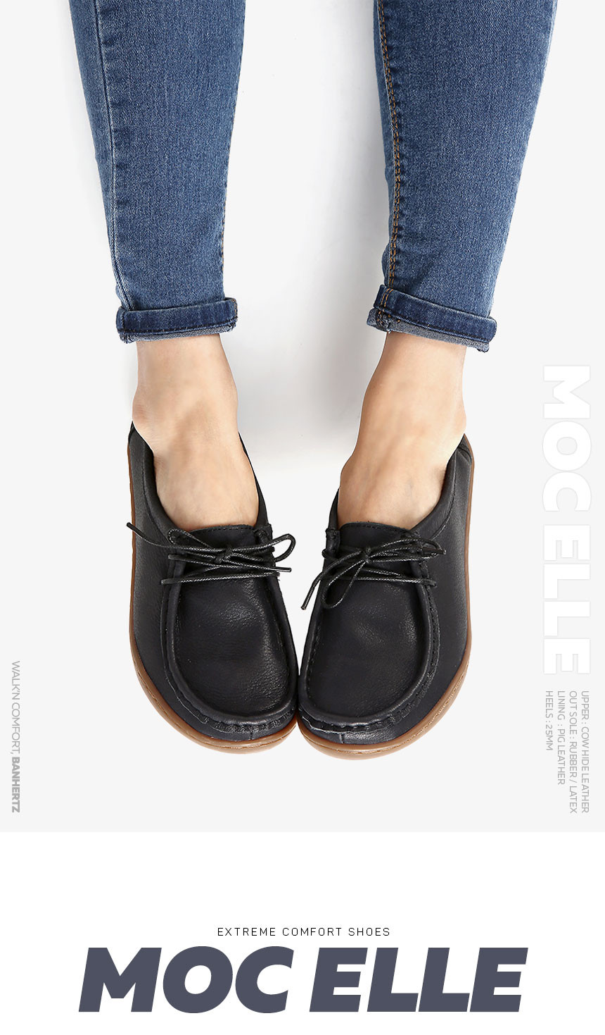 둥근 앞코와 발볼, 그리고 발등까지 여유로운 컴포트화. 목 엘르(MOC ELLE) 동일한 제품 라인의 카인, 하이드 보다 발등이 여유로운 구조를 가졌습니다. 부드러운 촉감을 가진 소가죽 갑피와 두툼한 천연 라텍스 깔창 위를 돈피로 마감하여 쿠션과 밀착감이 뛰어나며 장시간 착화에도 편안함을 제공하죠!