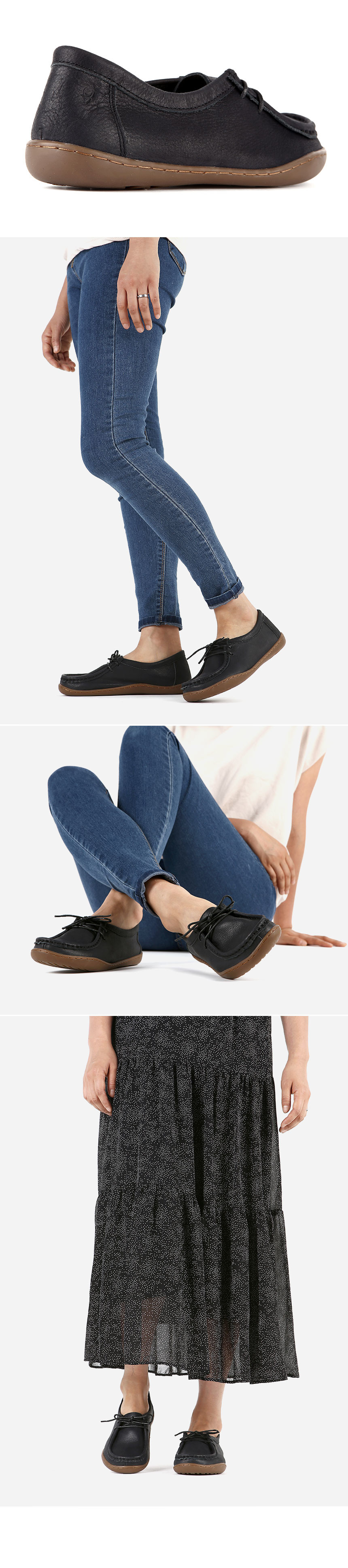 둥그스름한 앞코 부분과 여유있는 발볼로 지면에 발이 닿을 때 발가락이 모이지 않고 퍼지기 쉬운 형태로 공기순환이 원활하며, 덕분에 하루종일 신고 걸어도 발과 몸 전체에 누적되는 피로감이 덜하답니다.