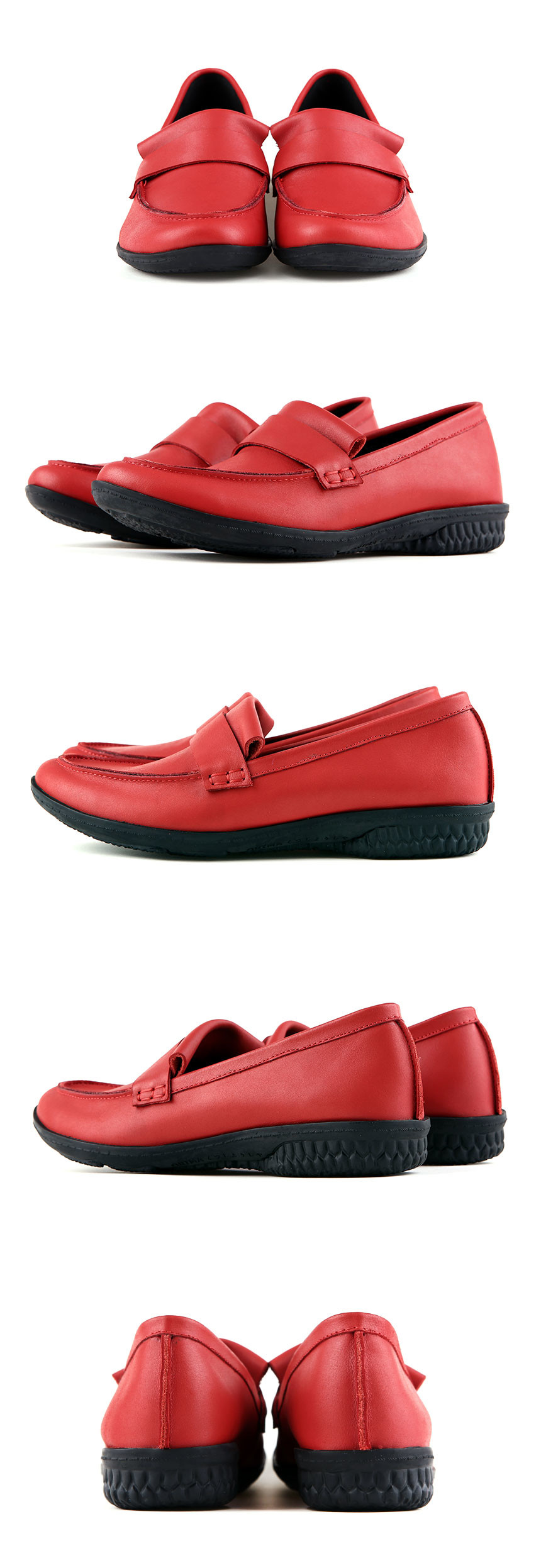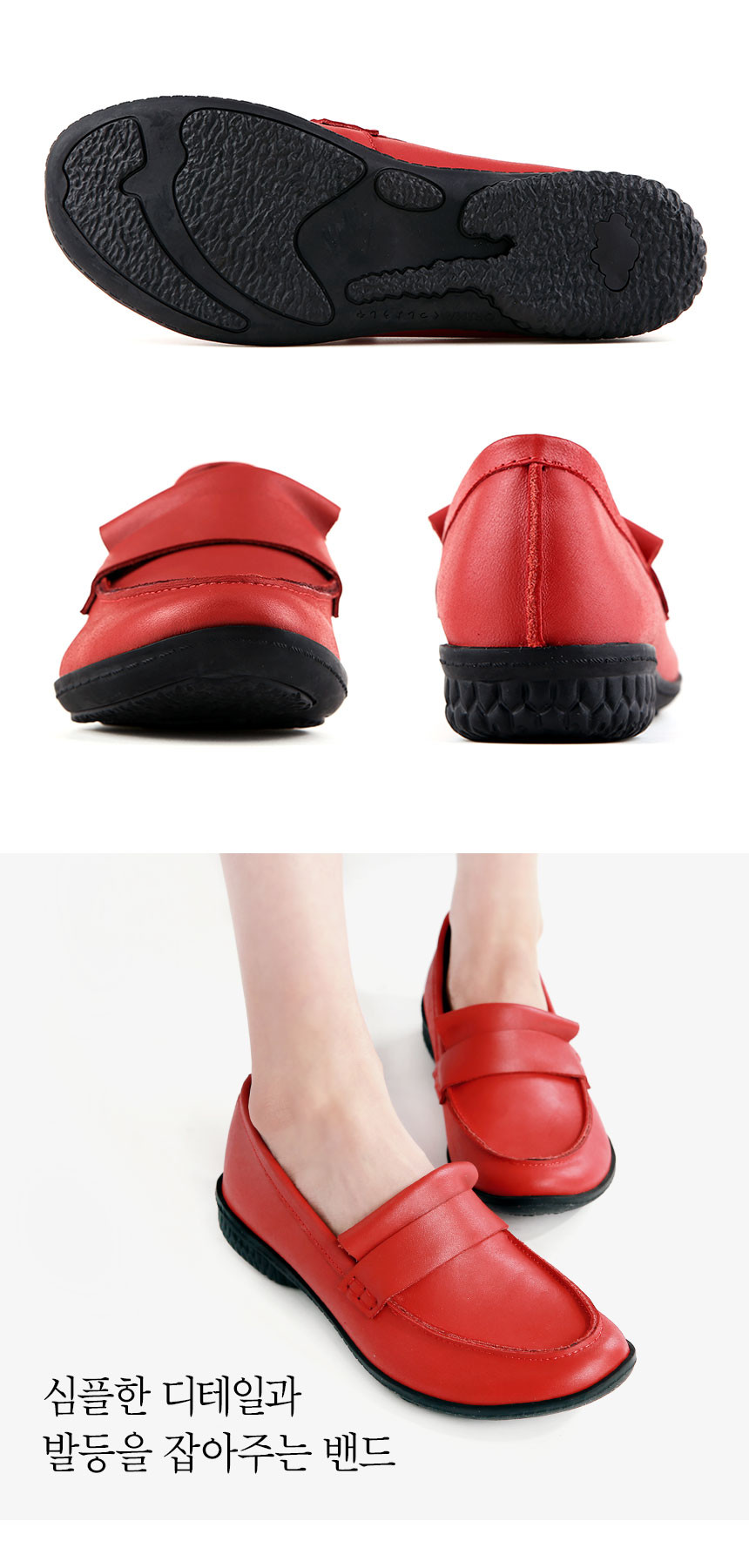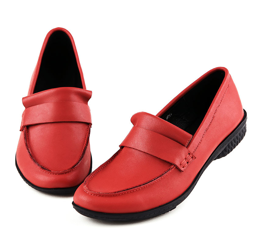 강렬한 레드 컬러 소가죽과 밴딩으로 포인트를 살린 슬립온 타입 로퍼. 유팁 스타일에 여유있는 핏으로 제작되었으며, 고밀도 러버 아웃솔과 라텍스 슬립솔이 편안한 착화감을 제공하기 때문에 데일리 슈즈로 적합한 제품입니다.