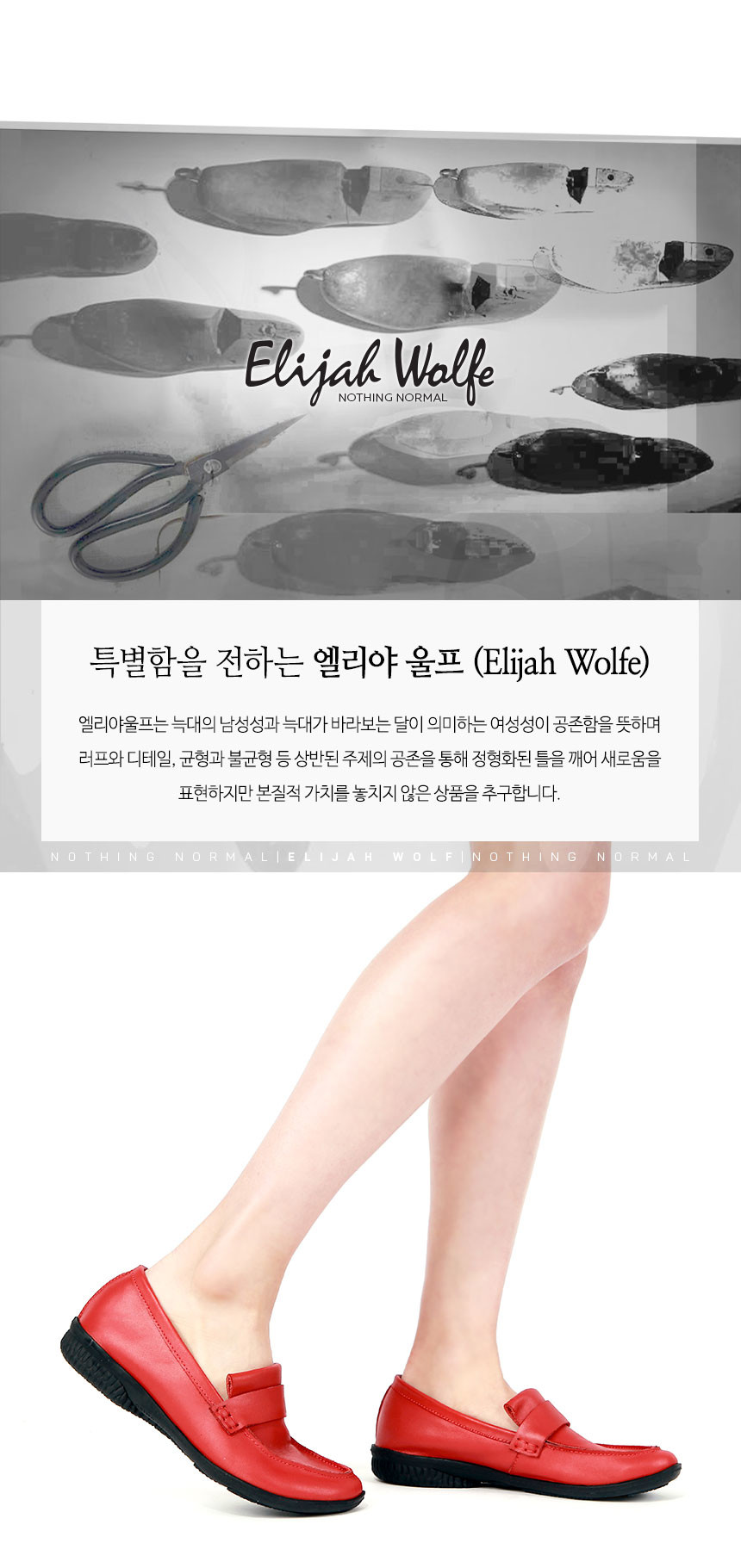 앞코부분을 살짝 들어올려 활동적인 느낌을 연출하며, 유팁형태의 라인과 여유로운 핏, 그리고 발등의 밴드 장식으로 편안하게 착화하기 좋은 슬립온 타입의 로퍼입니다. 특히 뒤꿈치부분의 마감을 바깥으로 돌출시켜 색다른 스타일로 표현한 것이 특징이죠.
