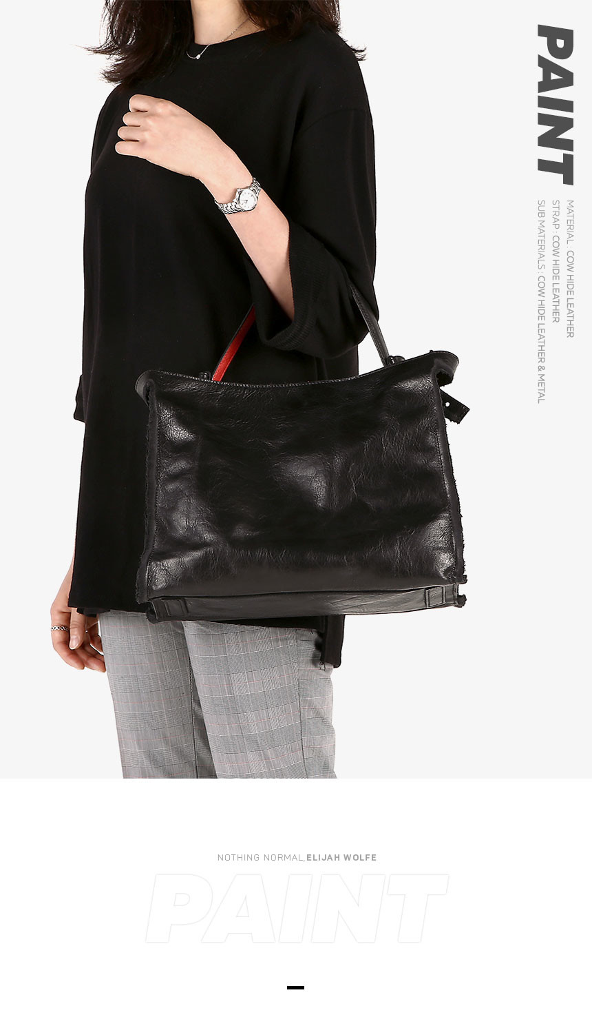 두툼하면서도 부드러운 감촉의 홑겹의 소가죽을 미니멀한 디자인으로 완성한 ‘페인트’. 마그네틱 단추로 쉽게 열고 닫을 수 있으며 강렬한 레드 컬러 소가죽이 은근히 돋보이는 토트&크로스백입니다. 적당히 루즈한 멋으로 매일 편하게 들고다니기 좋은 데일리백이죠!
