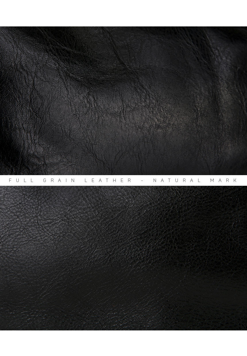 덧붙이자면 질 좋은 원가죽을 최소한의 가공을 통해 탄생한 풀그레인 가죽으로 미세한 모공 및 가죽의 결이 그대로 살아 있습니다. 그렇기 때문에 가죽 표면에 점, 주름 또는 미세한 상처가 있을 수 있습니다. 이는 인위적인 가공을 최소화하였다는 반증이기도 하며 좋은 가죽 본연의 모습을 가장 잘 표현해주는 부분이기도 합니다.