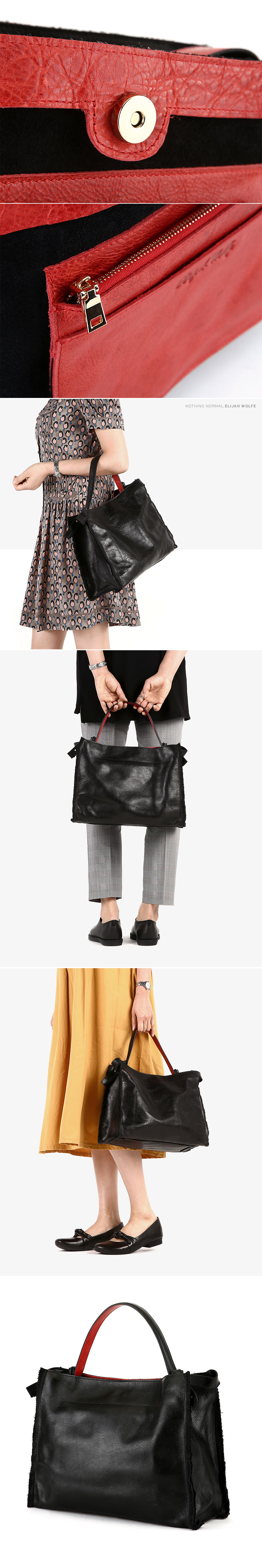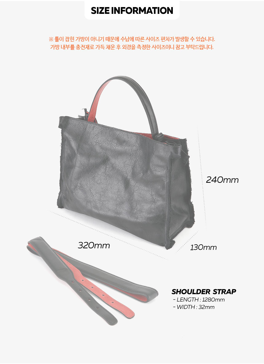 딱 떨어지는 각이 잡힌 스타일이 아니며, 부드러운 천연 가죽의 느낌을 잘 살려 제작한 토트 & 숄더백 입니다. 내부 수납량에 따라 모양이 잡히거나 자연스럽게 무너지는 루즈함이 이 가방의 매력 포인트라고 할 수 있습니다.