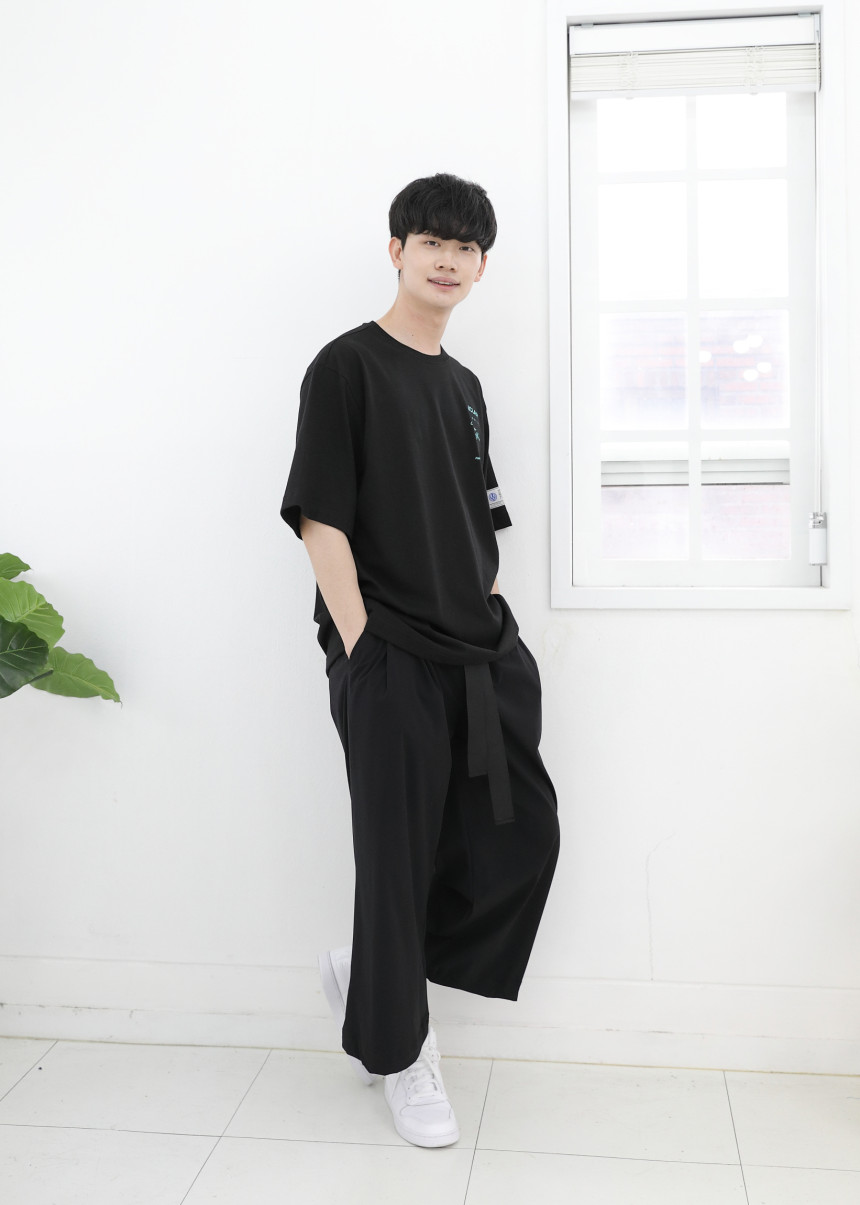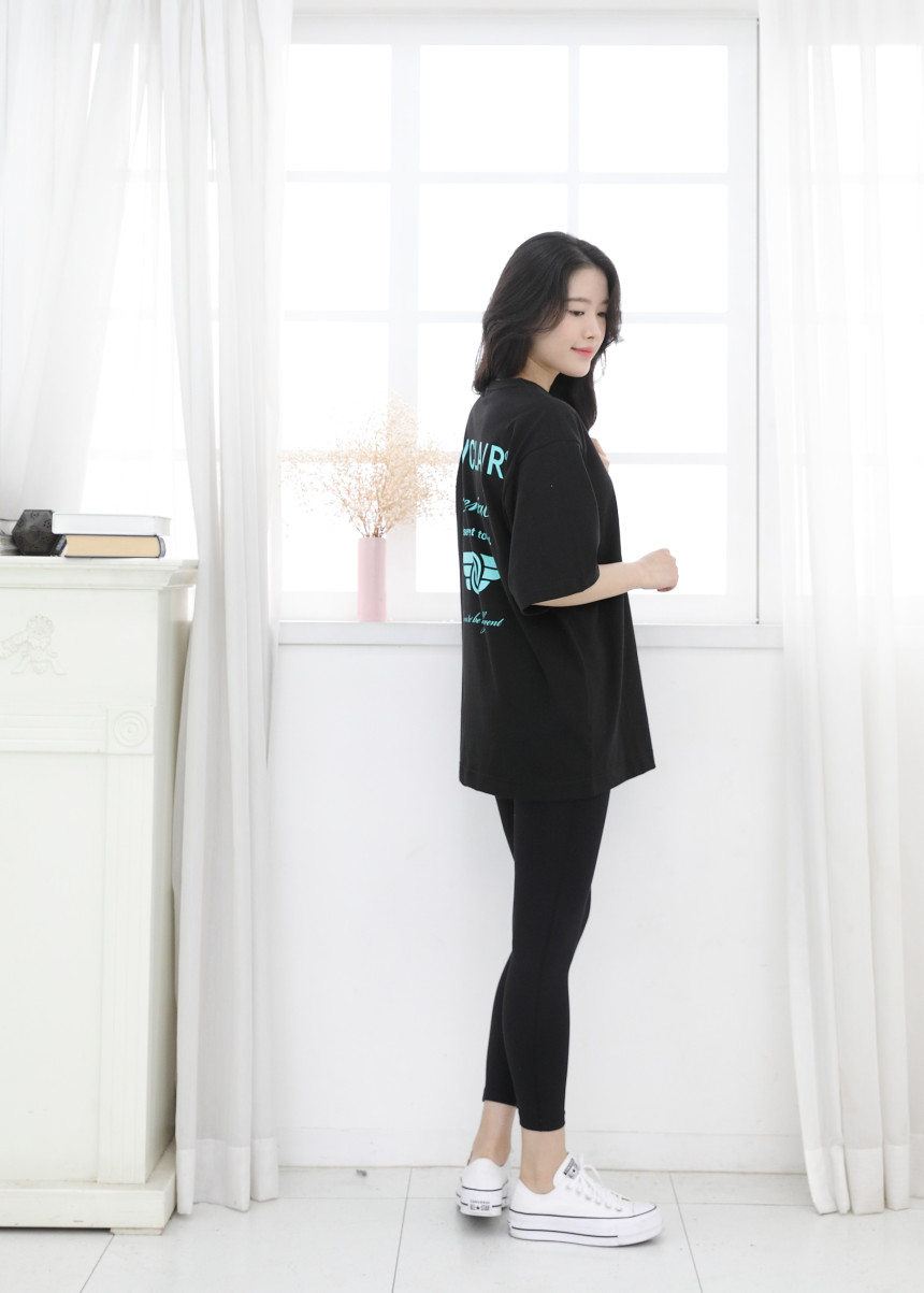 자연스럽게 떨어지는 드롭숄더와 5부 소매 디자인으로 여유로우면서 깔끔한 실루엣이 특징입니다.