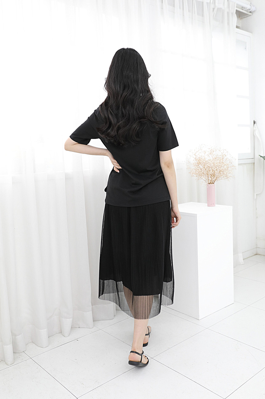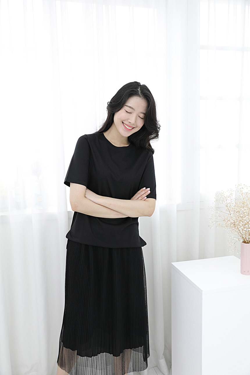 여유있게 떨어지는 미니멀한 실루엣과 모던한 느낌의 4부 소매를 채택하여 팬츠, 스커트 등 다양한 하의와 코디가 되는 기본 아이템입니다.