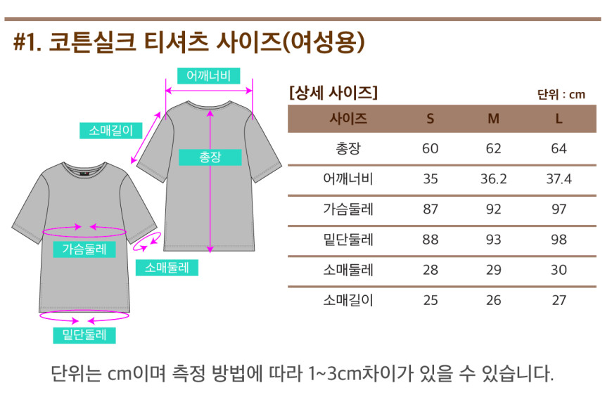 [프리미엄 코튼실크 티셔츠] 사이즈 선택 팁!