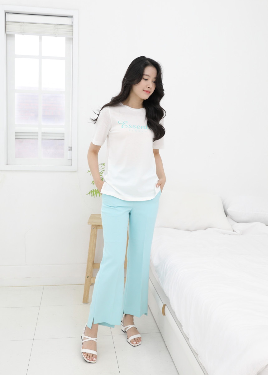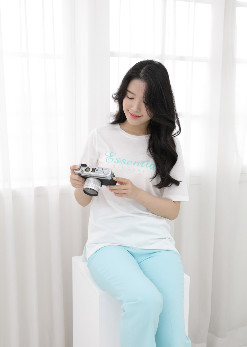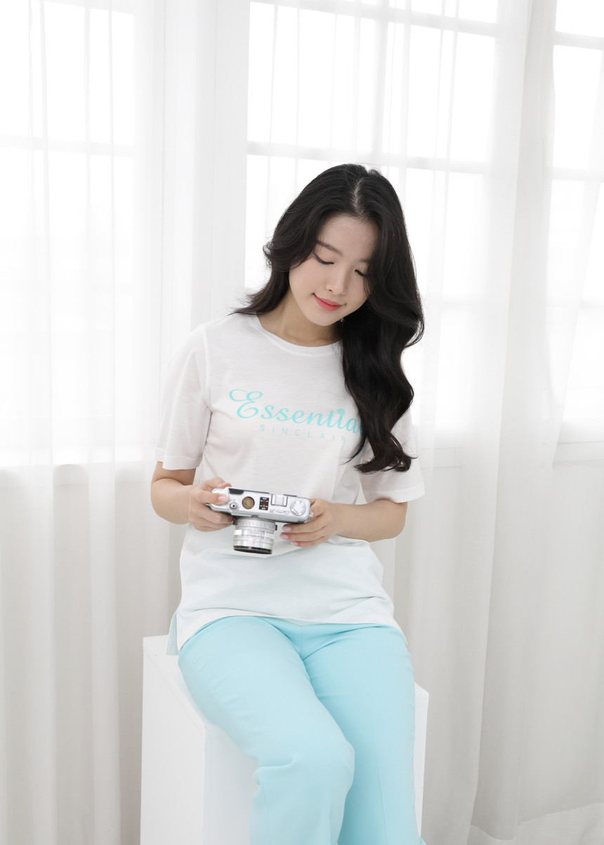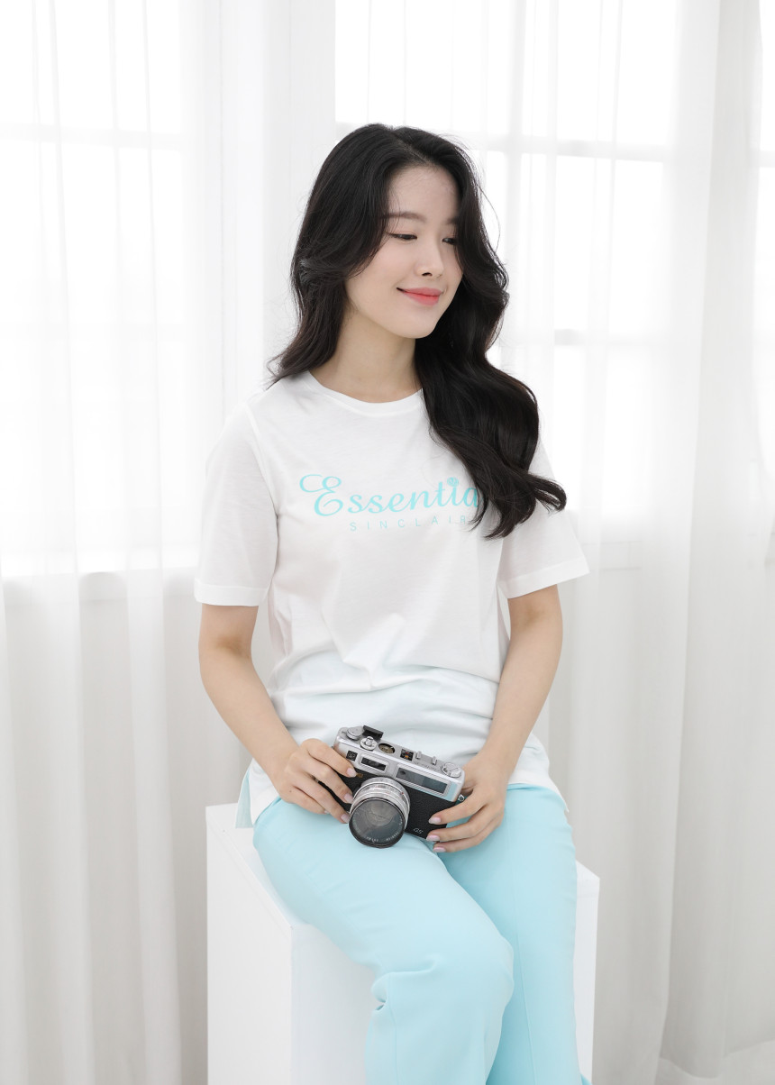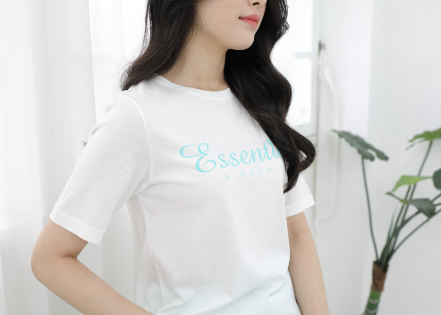 이번 프로젝트 테마인 "Essential(기본, 본질)"이라는 문구로 스크립트 레터링 디자인이 들어간 프린트 스타일도 함께 준비하였습니다. 무지와는 또 다른 캐쥬얼하면서도 스타일리쉬한 감성을 보여줍니다.