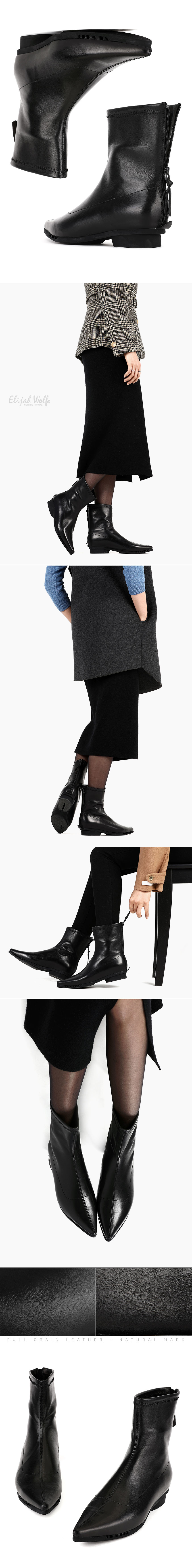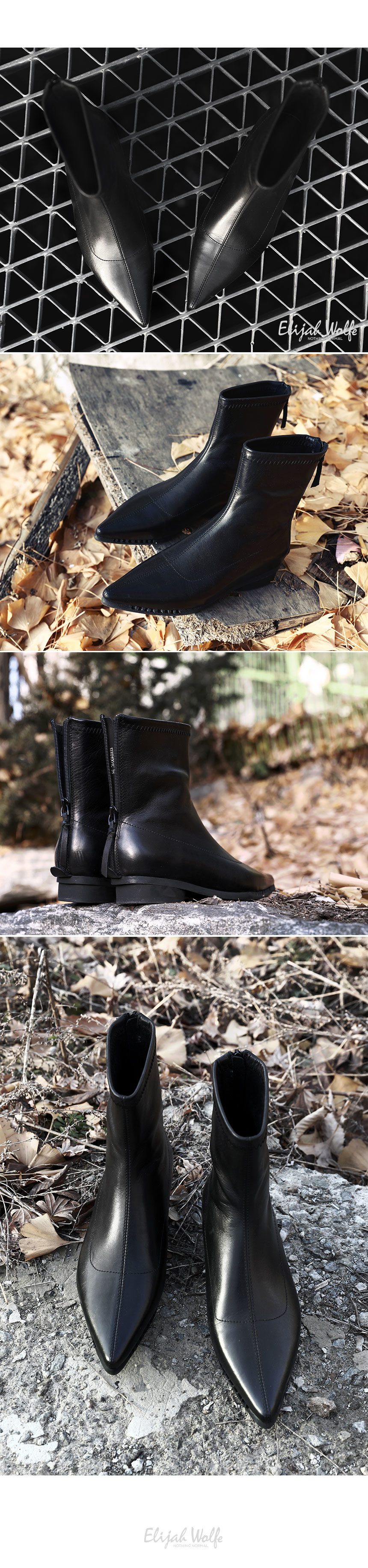 앞코부터 발목까지 이어지는 라인을 잘 다듬어 놓은 여성용 부츠로, 블랙 컬러의 부드러운 소가죽과 발목에 부담을 덜어주는 셔링이 맵시를 살려주고 라텍스 깔창으로 편안한 착화감까지 느낄 수 있도록 제작되었습니다.