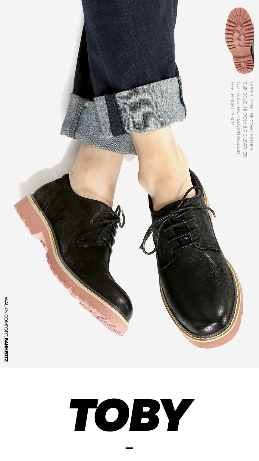 베이직한 디자인의 플레인 더비 슈즈인 토비(TOBY)는 경쾌한 느낌의 투톤 아웃솔과 보들보들한 감촉을 가진 천연 소가죽의 조합으로 캐주얼과 댄디함을 동시에 연출 할 수 있는 슈즈입니다. 한결같은 쿠션감을 가진 하이폴리 인솔과의 조합으로 기분좋은 착화감을 느껴보시기 바랍니다.